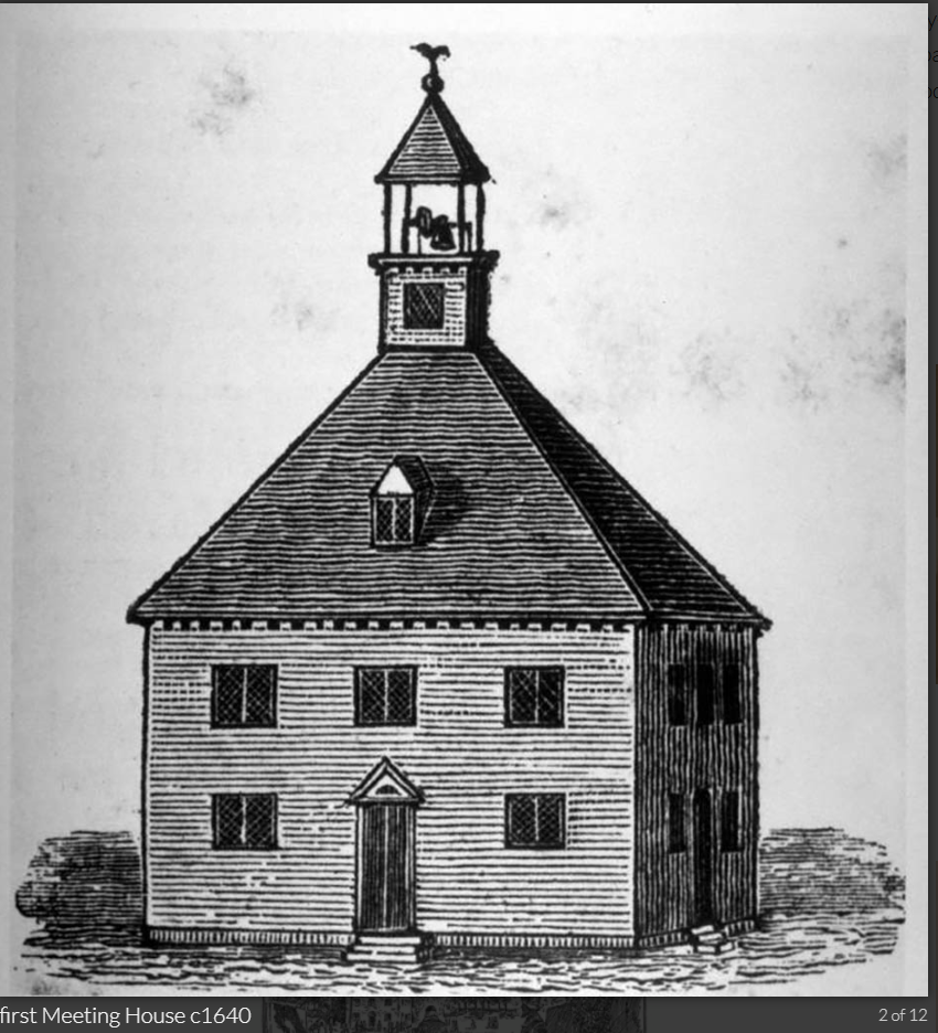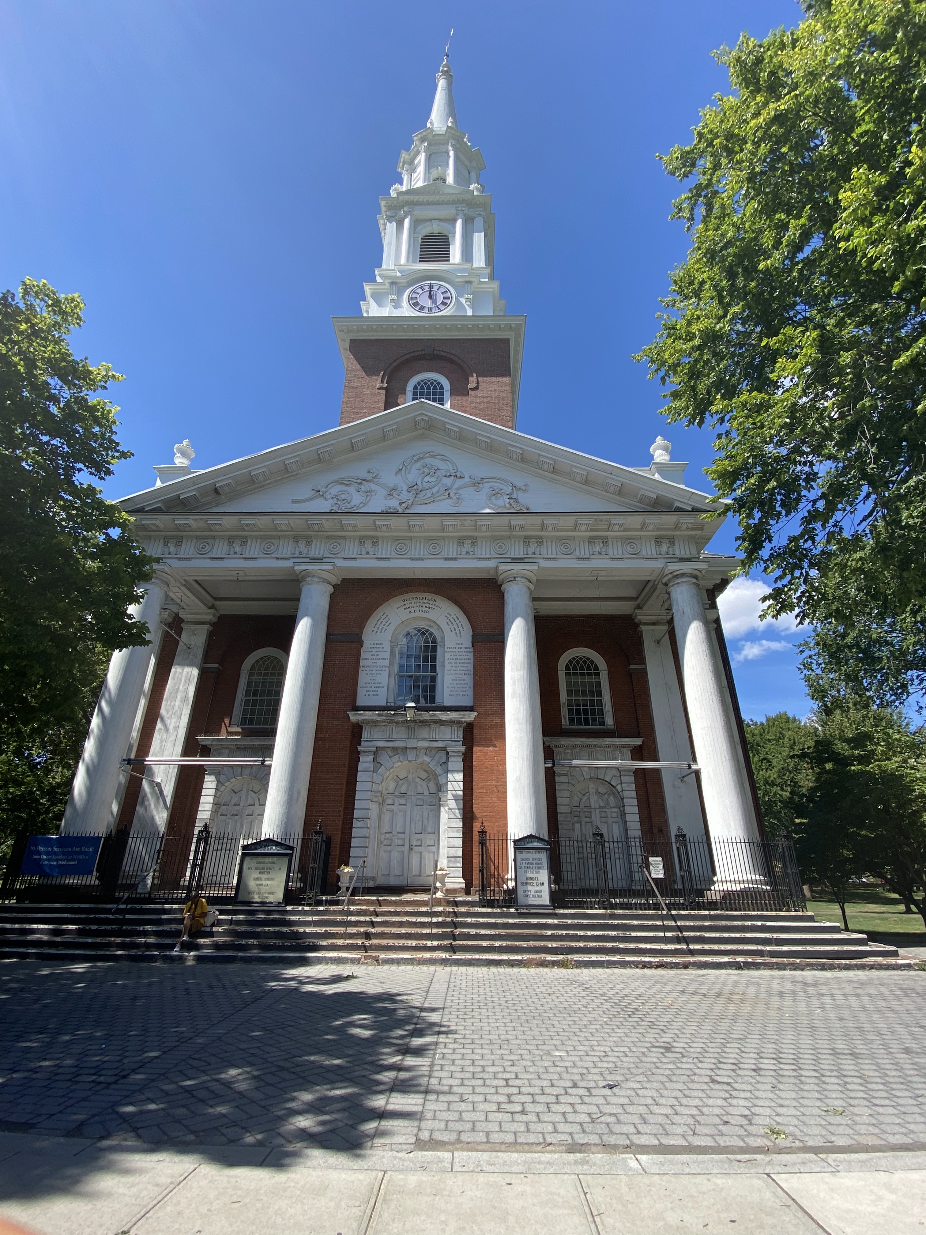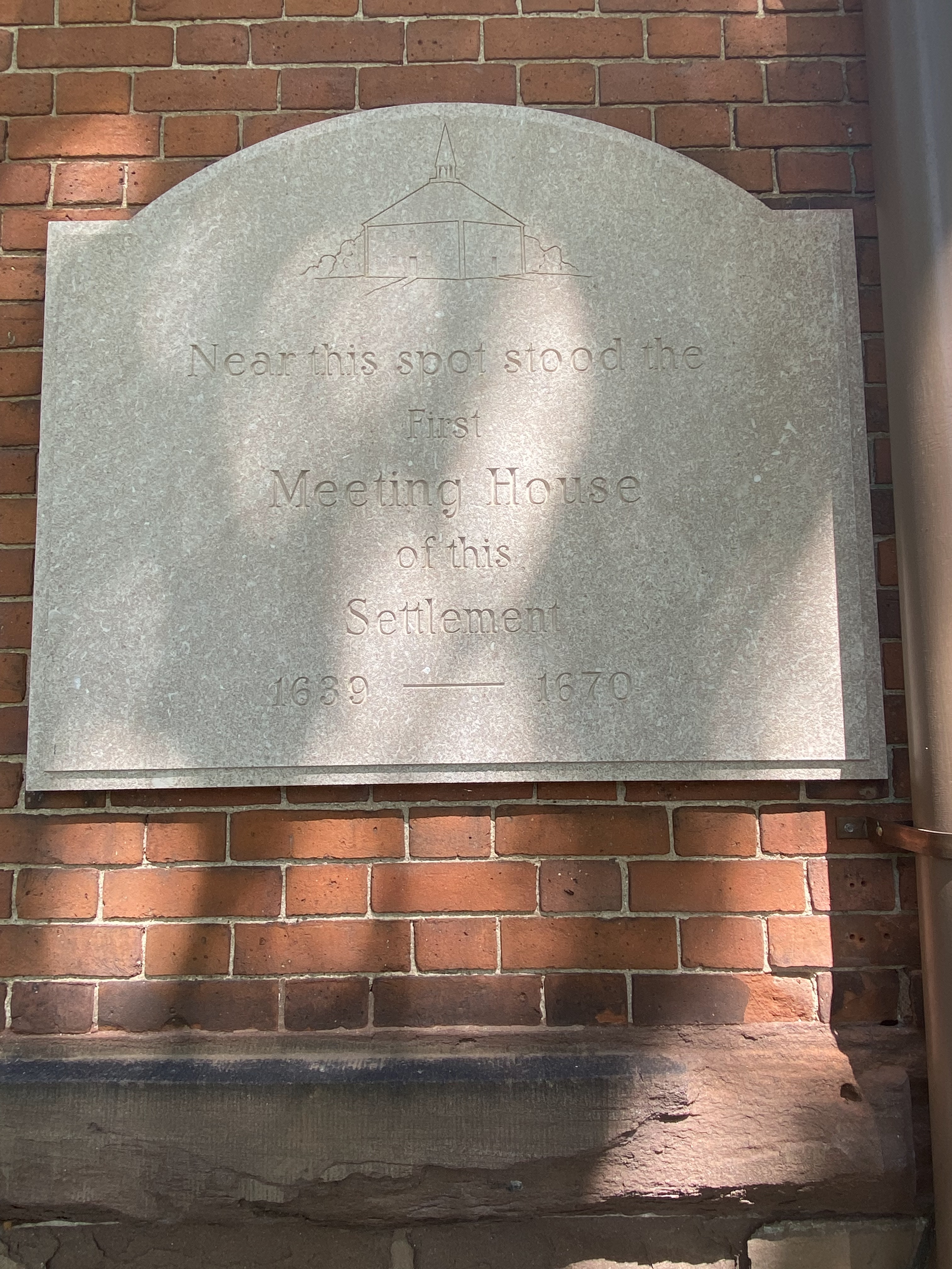 The present Meeting House, built 1812-1814, is the fourth meeting house of the congregation. The edifice was built over the colony’s ancient burial grounds on the Green, and thus the basement with numerous burial stones is referred to as the Crypt. source