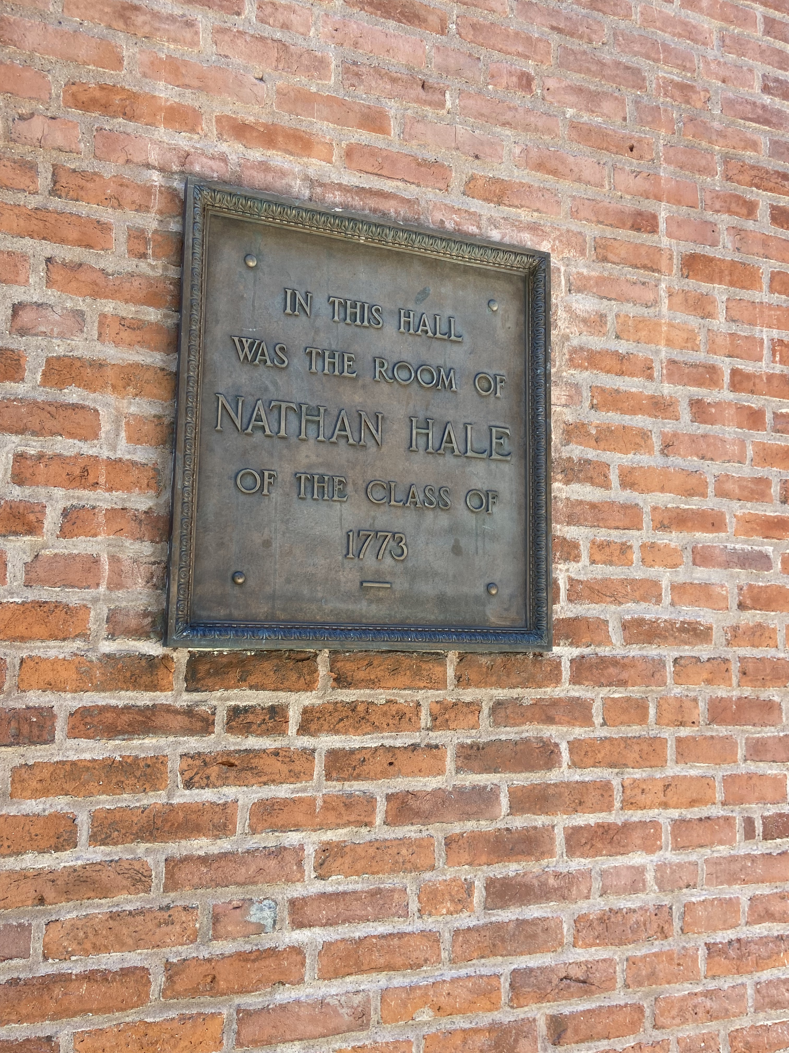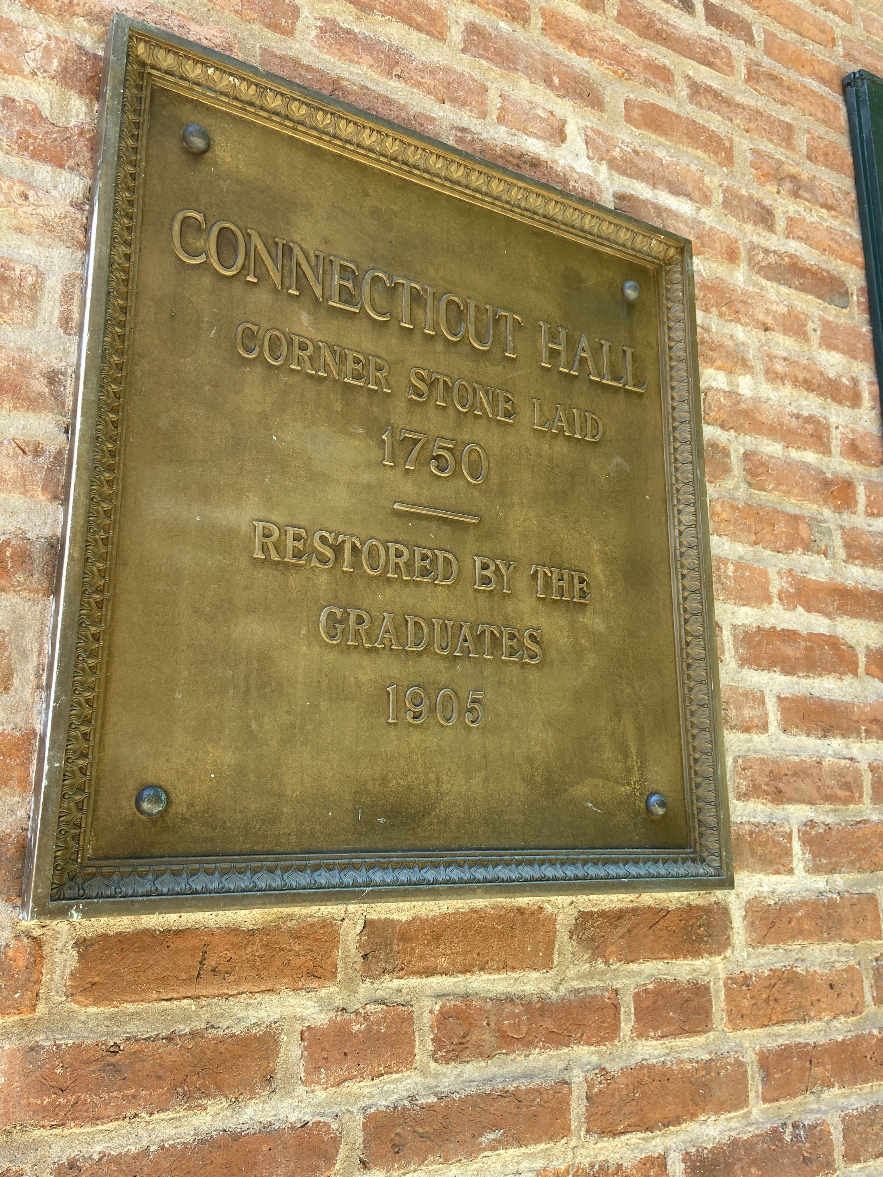 A plaque on the side of Connecticut Hall also mentions that Nathan Hale, class of 1773 and famous Revolutionary War spy was a resident. He would be hung by the British just 3 years later in Sept 1776.