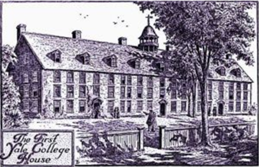 Yale’s first building in New Haven, the College House, was erected in 1718 on the Old Campus’ southeast corner, fulfilling the city founders’ wish to have a college near New Haven’s Congregational church (James Pierrepont). It was joined by Connecticut Hall in 1750, a student dormitory and Yale’s only surviving building from the colonial era… When Yale College moved to New Haven in 1718, the town constructed its first building, the “College House,” at the corner of College and Chapel Streets, where Bingham Hall now stands. The wood-framed structure contained all the functions of the college: student rooms, a library, and a combined chapel and dining hall. Falling into disrepair, this building was torn down in stages from 1775 to 1782. source