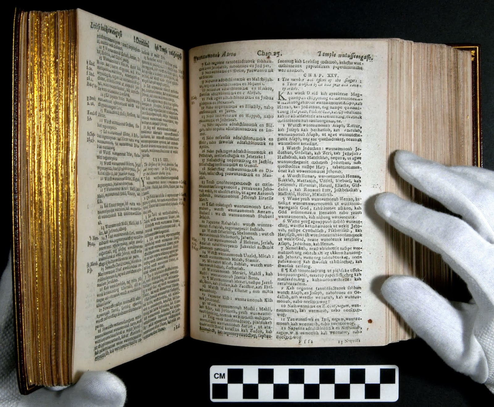 John Eliot’s single-handed translation of the Bible into the Natick dialect of the Massachuset language was the first printed Bible in North America, and the largest single printing project of the colonial era…Samuel Green and Marmaduke Johnson produced a first edition of one thousand copies of the complete Bible, of which just a few dozen remain in existence. Most copies of Eliot’s 1663 Bible were destroyed during King Philip’s War in 1675-1676, but a second, improved, edition was published in 1685.