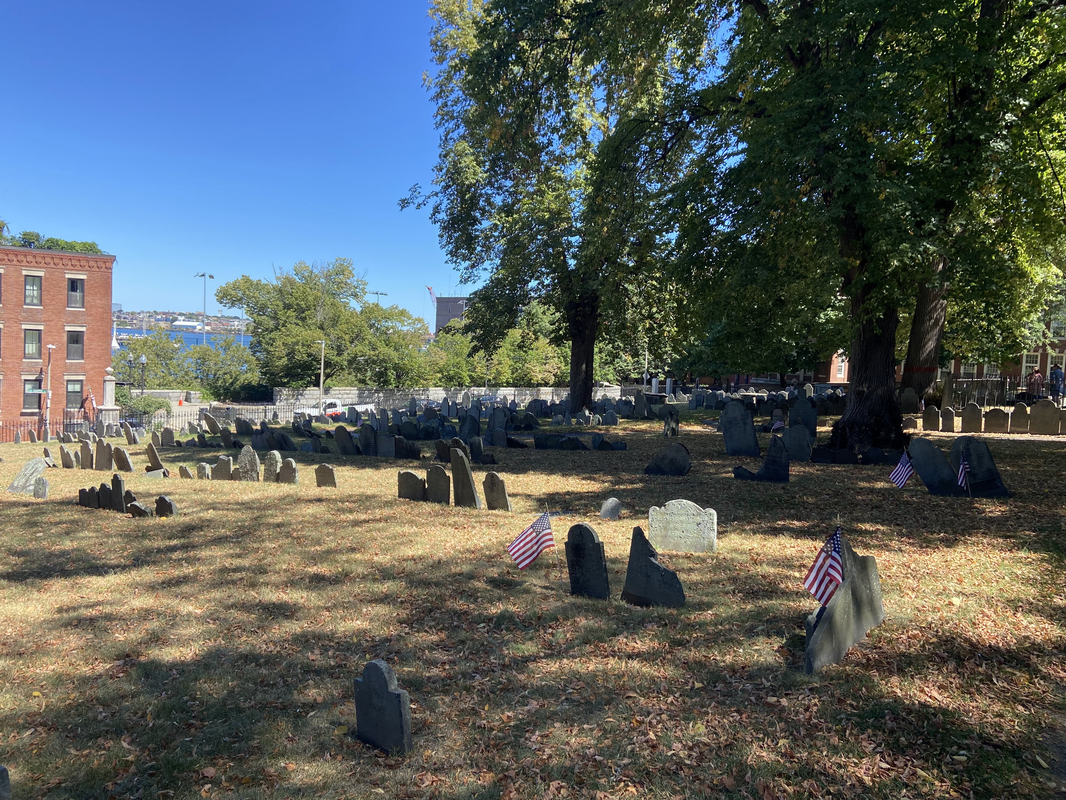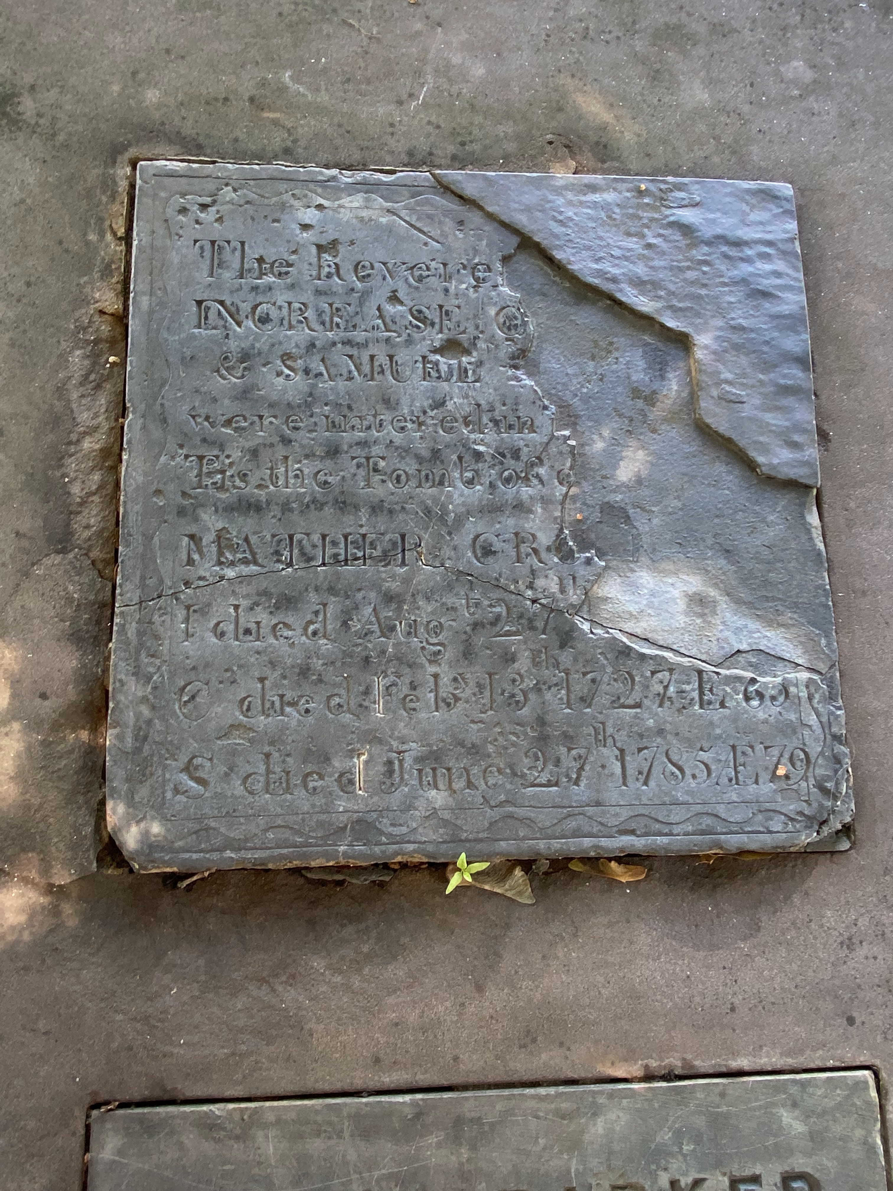“Several generations of the great 17th and 18th century New England divines are buried here. Increase (1639-1723), the father of Cotton (1663-1728) the son and Samuel Mather (1706-1785) the grandson, belonged to a remarkable family of ministers. At a time when the church wielded its own power and religious zeal translated into political influence, the Mathers’ ecclesiastical attainments assured them secular authority.